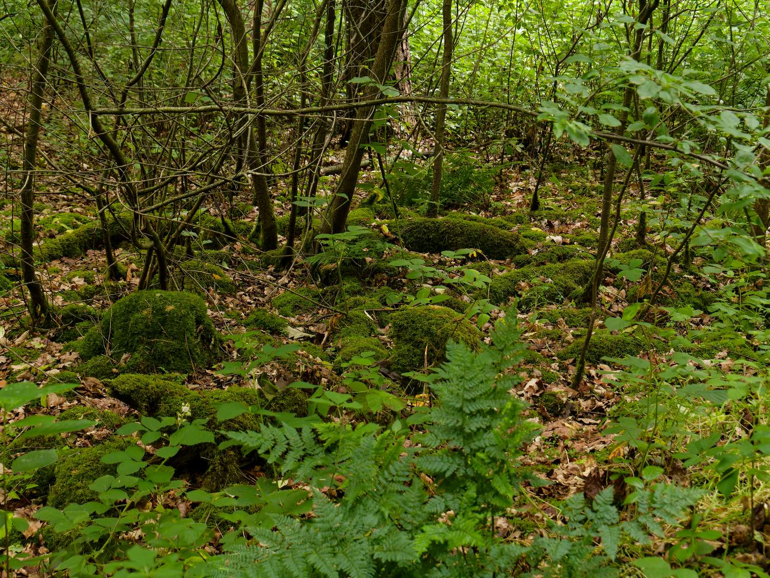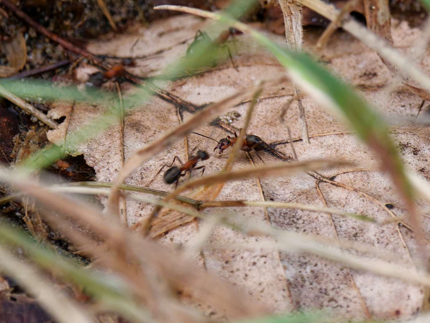 Tussen Elten en Babberich liggen een paar kleine bospercelen. Zo klein dat ze op Maps niet eens een naam hebben. Ik noem ze dan maar de Feldhausener bossen, naar de weg die er doorheen loopt. Ondanks de kleine oppervlakte blijken deze bosperceeltjes een rijke kolonie aan bosmieren te hebben. Ik heb er wel 10 nesten geteld!